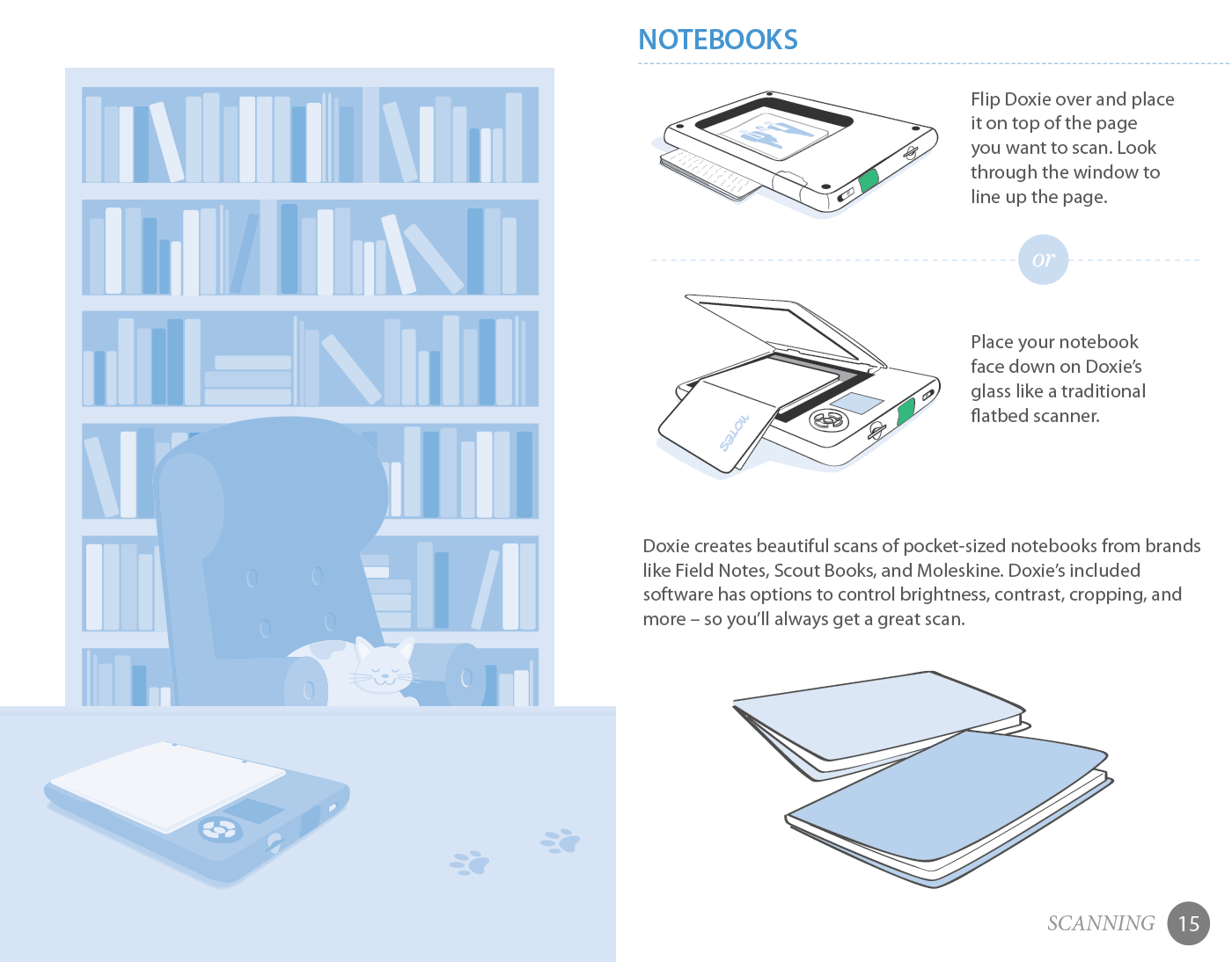 Illustration I did in 2013 for the launch of the Doxie Flip portable flatbed scanner.