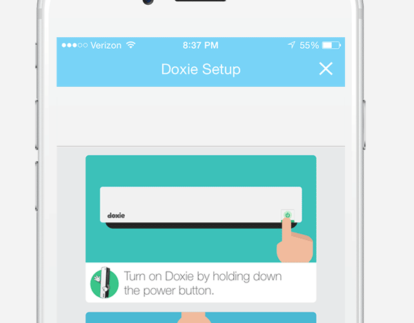 First used with the original Doxie scanner, the Doxie character changed as the scanner line changed.