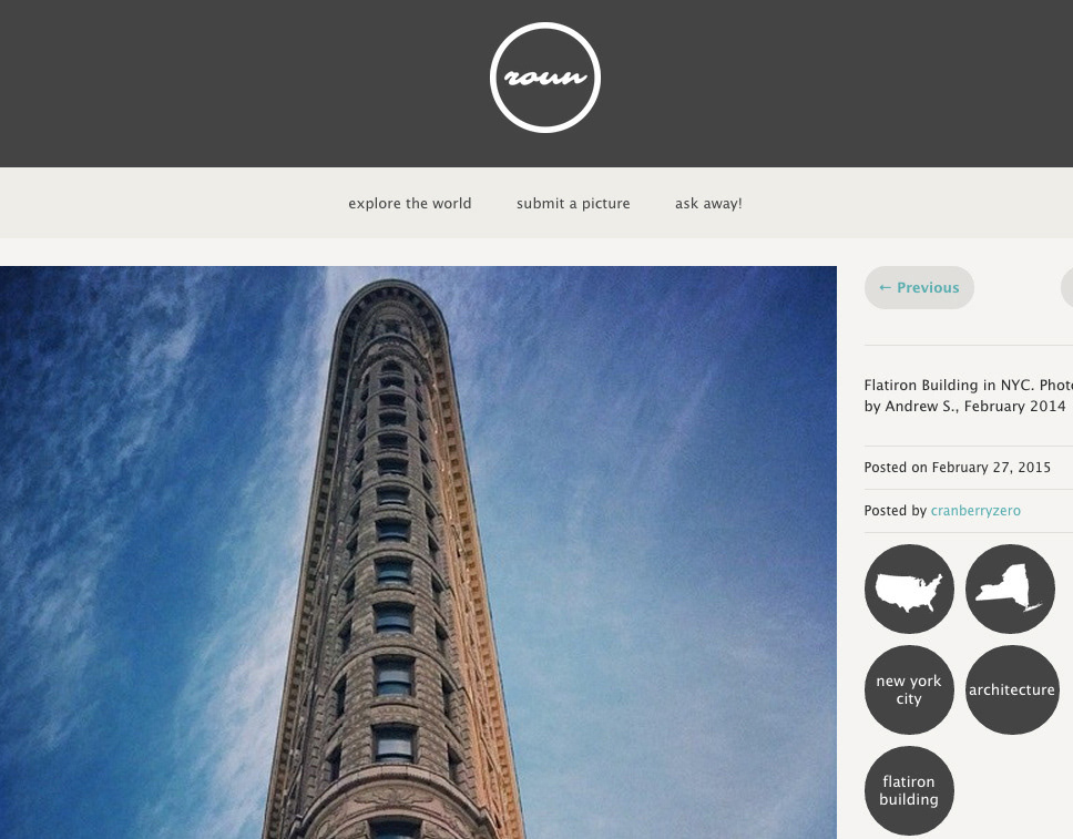 I launched the website Roun in order to promote original photos from regular people around the world as well as showcasing photographers all over the globe.