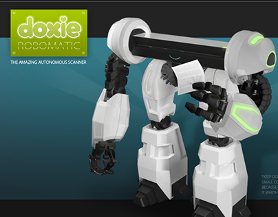 In 2012, with the launch of the Doxie Go, whose main tagline was "Scan Anywhere", I imagined a scanner that you wouldn't take with you, but would scan autonomously-- going around your home or office, finding whatever it could fit in its face and scanning it, whether you wanted it to or not. The Doxie Robomatic was meant to be an April Fool's Day campaign to follow up on the Doxie Go, taking scanning to the next futuristic level.