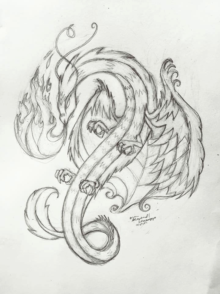 Work in progress dragon tattoo design. Trying to incorporate different elements from both Eastern and Western dragons into one creature.